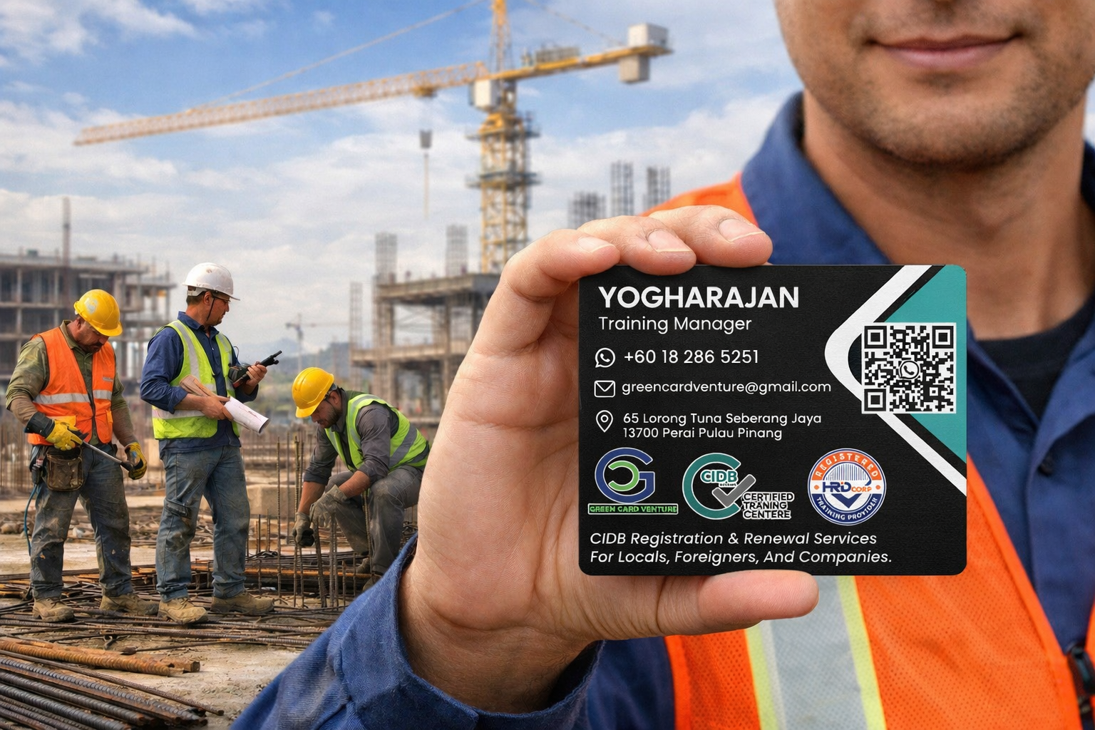 Green Card Venture komited untuk membantu pekerja tempatan, pekerja asing, syarikat pembinaan, dan kontraktor memastikan setiap proses dijalankan dengan tepat, teratur dan mematuhi undang-undang. Dengan pengalaman dan kefahaman terhadap prosedur CIDB, kami berusaha memudahkan urusan pelanggan serta mengurangkan kesilapan dan kelewatan permohonan.